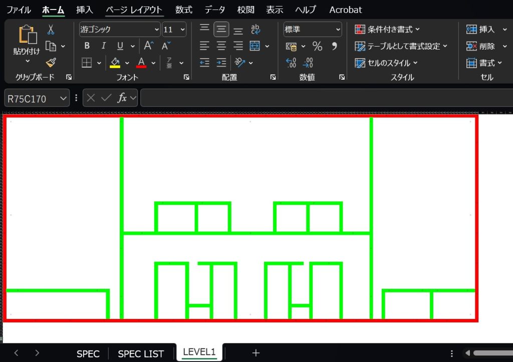 ここではプランをExcelシートで表現してみます。現実の設計業務にすぐに使える詳細度ではありませんがひとつのチャレンジです。
